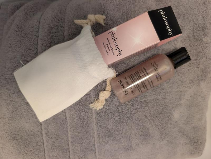 I absolutely love the Philosophy Special Cardamom Delivery shower gel and shampoo. The texture feels luxurious and smooth, creating a rich lather that leaves my skin and hair feeling soft and hydrated. The scent of cardamom is warm and cozy — perfect for relaxing showers or bubble baths. It rinses off easily without leaving any residue, and the fragrance lingers lightly on the skin. I also appreciate the beautiful packaging, which makes it a great gift or stocking stuffer. A little goes a long way, so the bottle lasts quite a while.